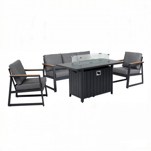 alu dining 4pcs firepit dining set 3-seater sofa(1pc) size: 202x84.5x73.5 cm