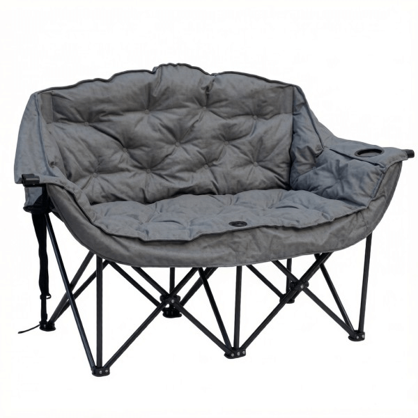 Double seater folding chair with 2 cup holders and wine cup folder