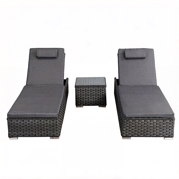 Steel 3pcs rattan sun lounger set